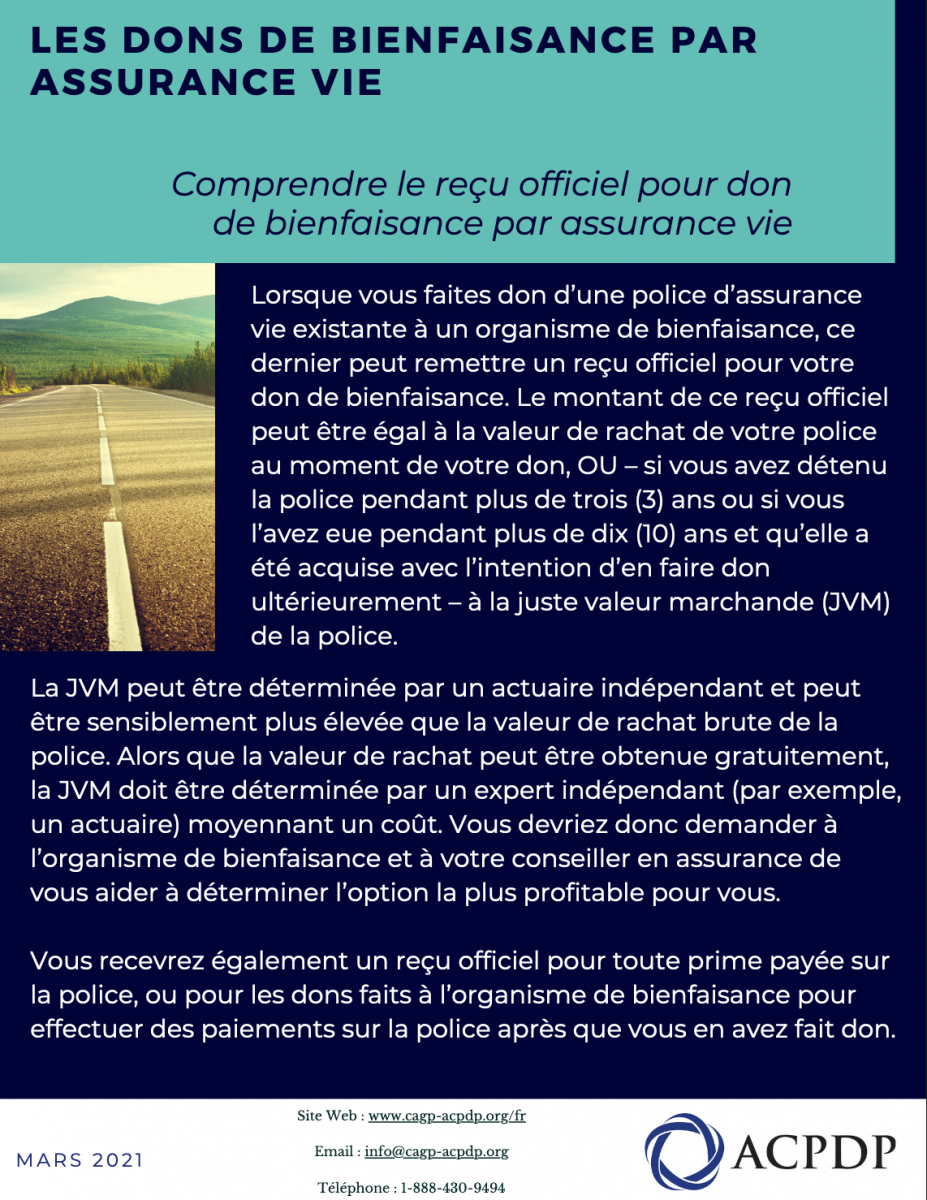 Comprendre le reçu officiel pour don de bienfaisance par assurance vie Version mise à jour |